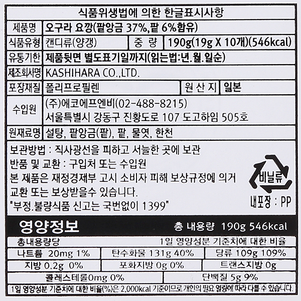 1. 오구라 요깡(팥양갱) 190g