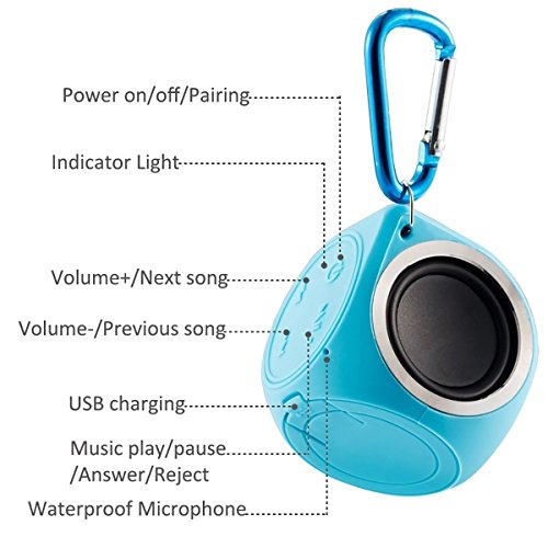Feature : Mini wireless speakers, portable and lightweight, pefect for outdoor living, easy to hang on your bag with the hook / Equiped with latest Bluetooth Version 4.1, perfect crystal and natural stereo sound with super audio performance / Compatible with ios android smartphone and PC which have Built-in Bluetooth. Bluetooth 4.0 EDR (enhanced data rate) allow up to 33ft. Built-in Microphone for hands-free calls, online chatting including Skype, Face Time, etc. / Waterproof Design IPX7 : Effectively protect from water and dust, covered with silica gel cases, offer a comfortable touching feeling / If you have any question with the item, please email to: support@elegiants.com, we will reply within 24 hours. We offer an 180-day money-back guarantee, if the purchase has any quality defect. Please be assured the purchase