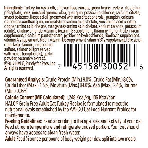 HALO HOLISTIC WET CAT FOOD, GRAIN FREE TURKEY, 3 OZ OF CANNED CAT FOOD, 12 CANS