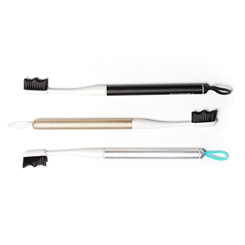 ReleaseDate : 2015-05-01 Studio : The Goodwell Company Publisher : The Goodwell Company Binding : Health and Beauty Product Description The Goodwell Toothbrush Kit comes with everything you need for cleaner teeth and a cleaner planet. The brushed anodized aluminum handle comes with a Binchotan (activated charcoal) toothbrush attachment, known for its plaque-fighting and disinfecting properties. The kit also includes a flosser and a tongue scraper attachment (all biodegradable), so you can switch between the 3 heads depending on which tool you need. The set comes in a rugged carrying case, making the kit great for travel. 0