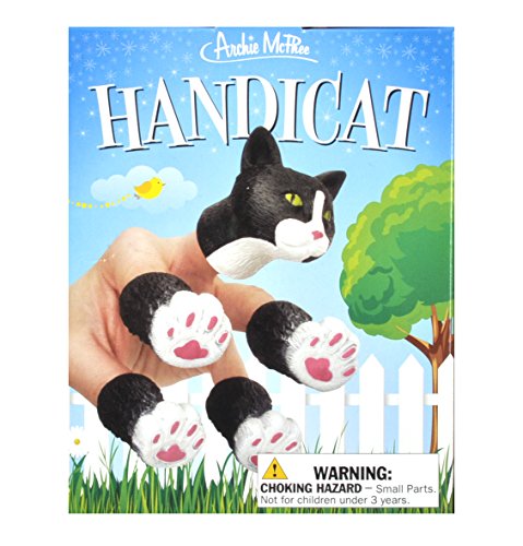 Not buying one would be a catastrophe Have you ever looked at your hand and wished it was a cat? You're in luck! This Handicat soft vinyl finger puppet set can turn your hand into a pretty kitty. Each set of five includes four paws and one kitty noggin. The paws are 1-1/2" (3.8 cm), head is 2" (5.1 cm). You'll start purring every time you shake hands. Illustrated box.Feature
