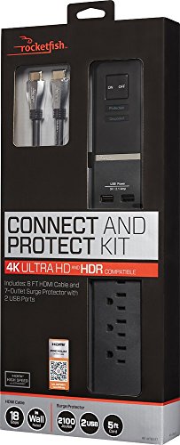 (Rocketfish)/Computers Accessories/Cables Accessories/DIRECT FROM USA/Rocketfish Connect Protect Surge Protector 4K UHD 7-Outlet 2-USB RF-HTB517
