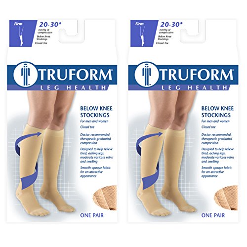 ReleaseDate : 2017-06-08 Studio : Truform Publisher : Truform Binding : Health and Beauty Product Description Truform 8865 was created to help relieve conditions associated with poor circulation. Graduated compression technology delivers a compressive action to the leg that is greatest at the ankle, then gradually decreases toward the heart. The 20-30 mmHg Firm compression level is great for post surgery and severe edema, varicose veins, spider veins, hypotension, post thrombotic syndrome (PTS), post sclerotherapy, and more. Truform therapeutic medical stockings feature classic styling and a smooth knit fabric that helps conceal unsightly conditions. The closed toe offers a more natural stocking feel. Color options are basic neutrals for all-occasion wear. Truform stockings, socks and pantyhose feature Graduated Compression Technology, which delivers a compressive action to the leg that is greatest at the ankle, then gradually decreases toward the heart. Graduated compression provides two primary benefits: it helps reduce and prevent swelling for the wearer, and the compression action help to prevent the slowing of blood flow so it can flow more quickly up the leg back toward the heart. Truform graduated compression support hosiery helps maintain positive circulation and leg health. We take the extra time and effort necessary to insure a therapeutically effective, comfortable fit. The combination of state-of-the-art materials and equipment, plus knitting "know-how" sets Truform apart from the crowd to make your legs look and feel great. Choose short length size when length from heel at floor to back bend of knee measures less than 15 inches. 0