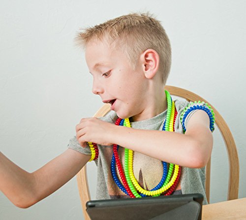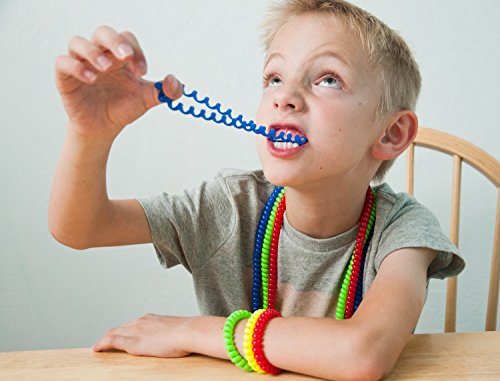 SMALL, CONVENIENT & SAFE: Even with larger more durable coil, bracelets fits nicely and comfortably on your child's wrist, allowing your child to play or chew on this chewable jewelry without any bulkiness. Great autistic chew toy or special needs chew toy.