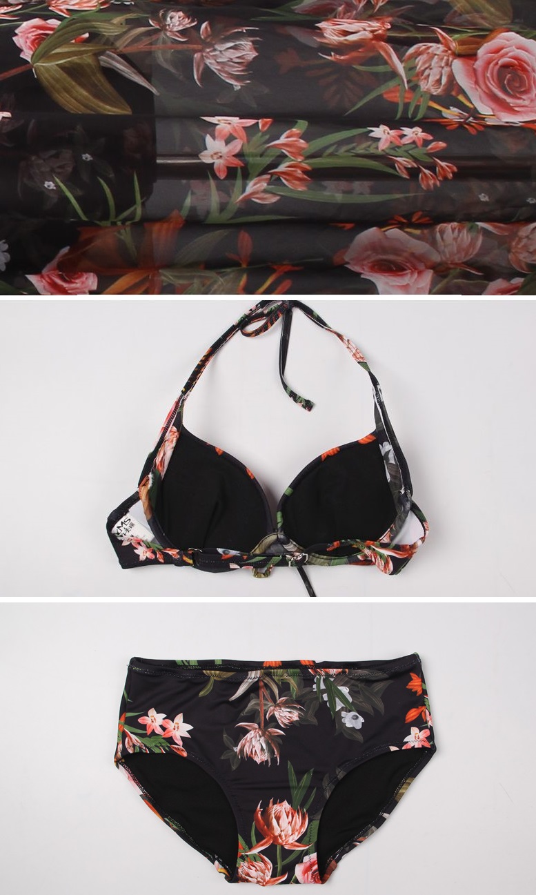 ビキニとロング丈ワンピースの3点セットです。