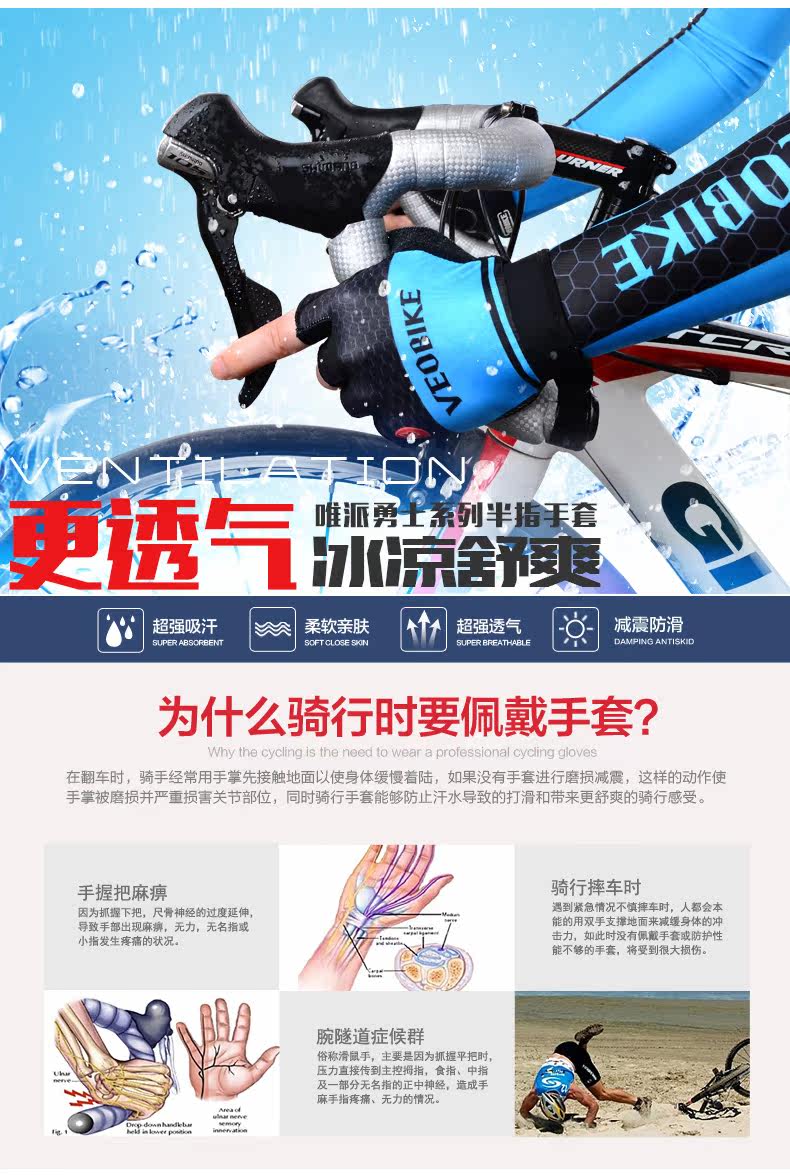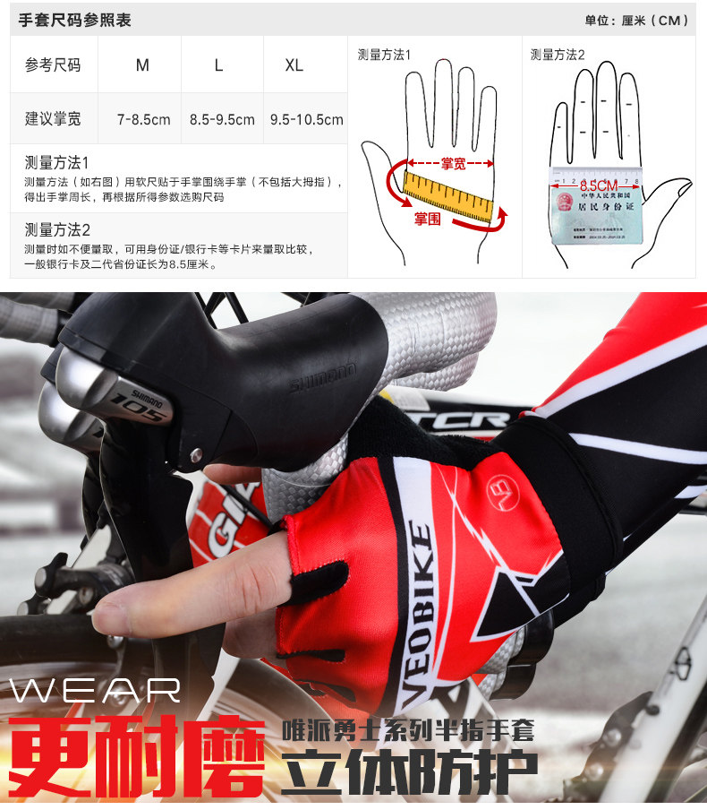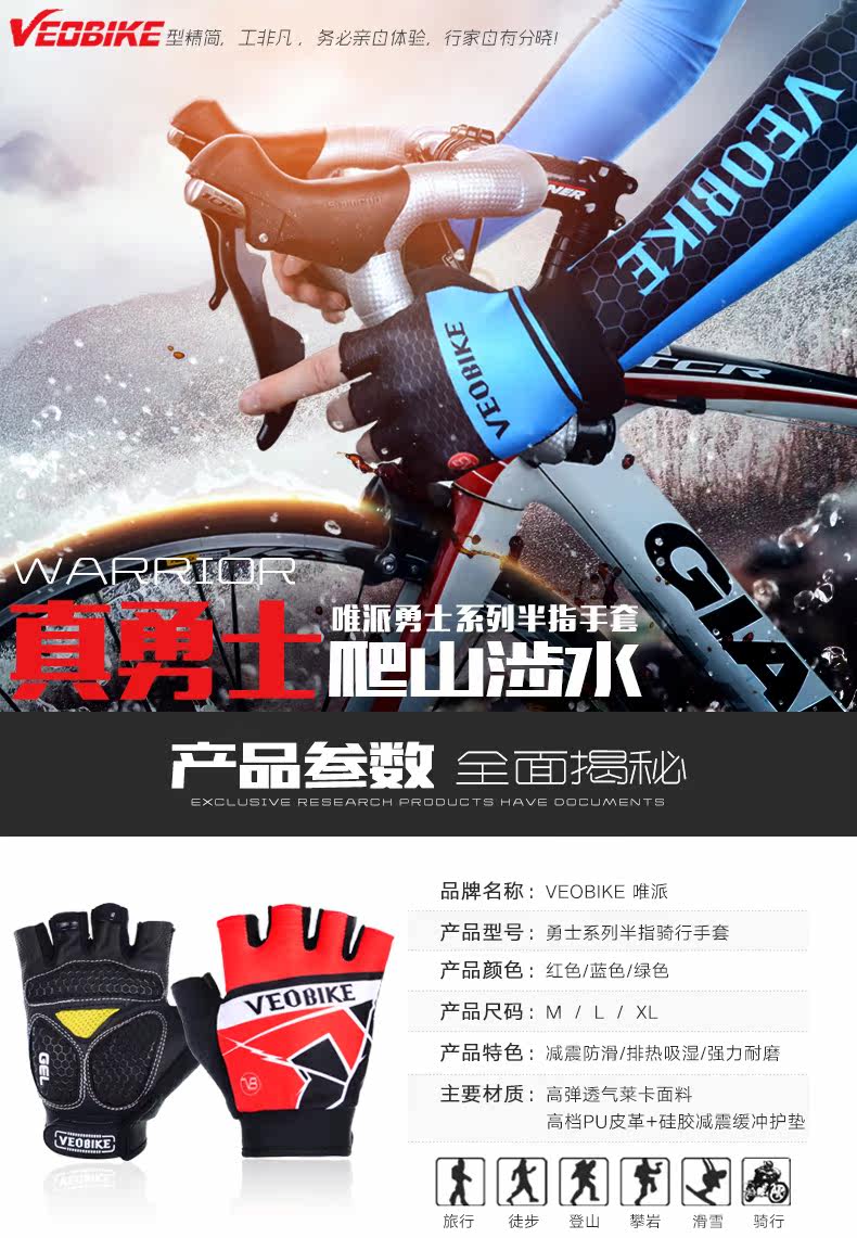 山地自行车装备骑行短手套 单车山地车半指硅胶手套