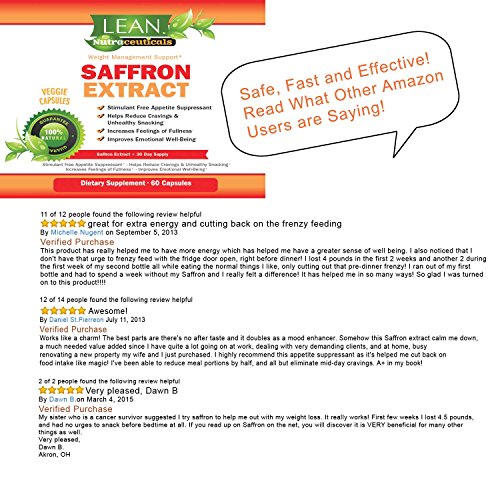 MOST EFFECTIVE ON AMAZON (Compare our reviews) -Our 100% Natural, Pure 88.25mg formula produces REAL weight loss results. Stop battling with depriving diets, crazy workouts, or "Magic Pills"...Saffron is your REAL answer!