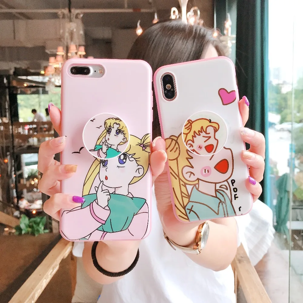 Features:Sailor Moon Air Bag Cell Phone Bracket Pink IMD Case