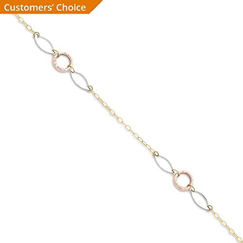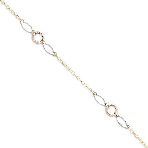 ICECARATS DESIGNER JEWELRY 14K TRI COLOR YELLOW WHITE GOLD CIRCLE OVAL 9 INCH 1 INCH ADJUSTABLE CHAIN PLUS SIZE EXTENDER ANKLET FOR WOMEN ANKLE BEACH CHAIN BRACELET