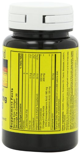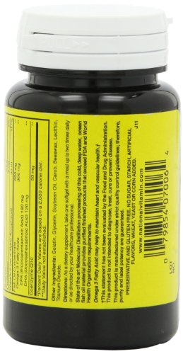Co-Q10 and Omega-3 features EPA and DHA plus 50 mg coenzyme Q10. Purity tested for toxins such as PCBs, arsenic and dioxins, as well as heavy metals. Preservative and gluten free.