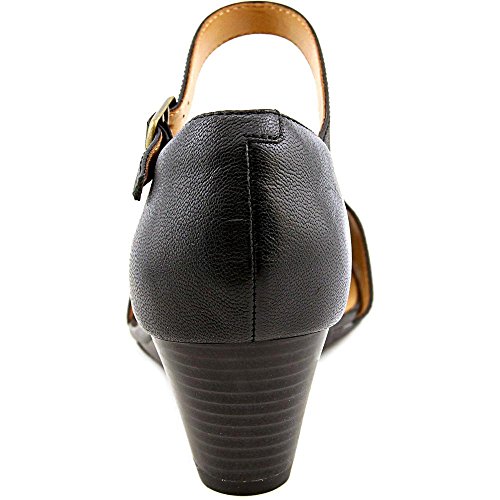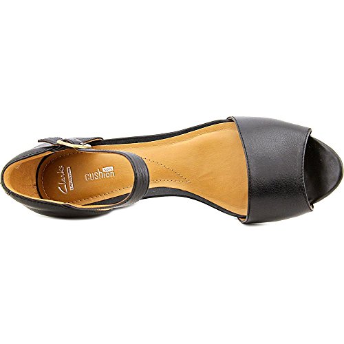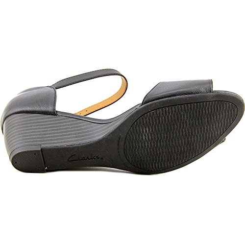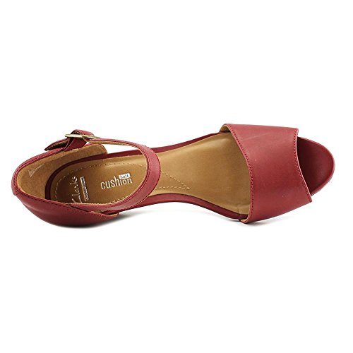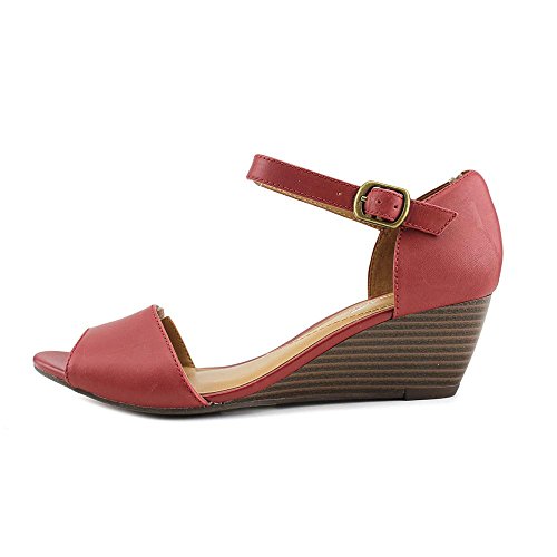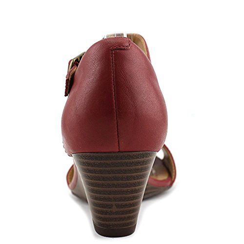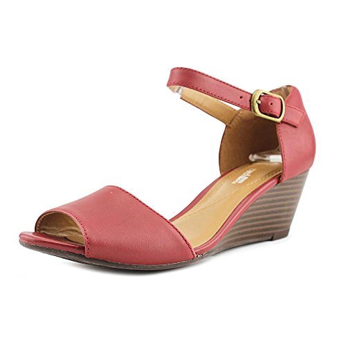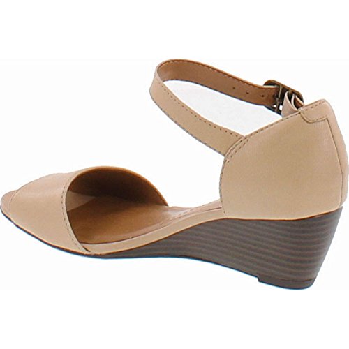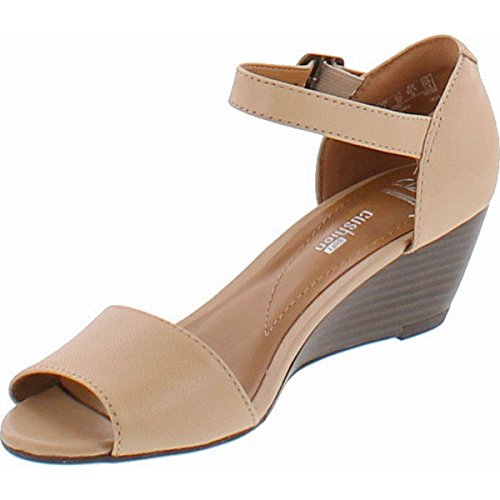 Stacked-wedge sandal featuring closed heel cup with ankle strap