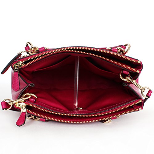 -. Feature : Crossgrain leather / Inside zip, cell phone and multifunction pockets / Zip-top closure, fabric lining / 10 1/2 (L) x 7 (H) x 4 (W) / Handles with 5 3/4 drop, strap with 23 1/2 drop for shoulder or crossbody wear