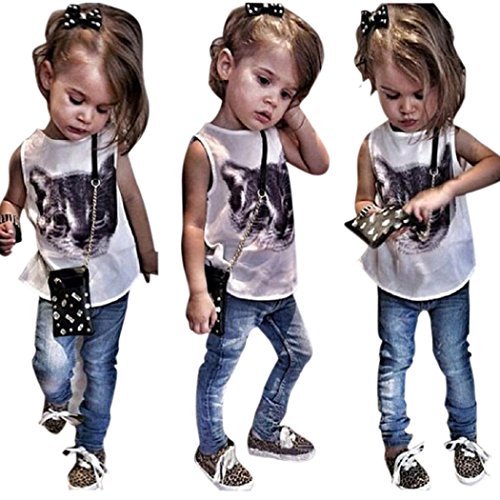 -. Title : Elevin(TM) 1Set Baby Girls Dress Cat P.R.Int T-shirt + Denim Pants Set Outfits