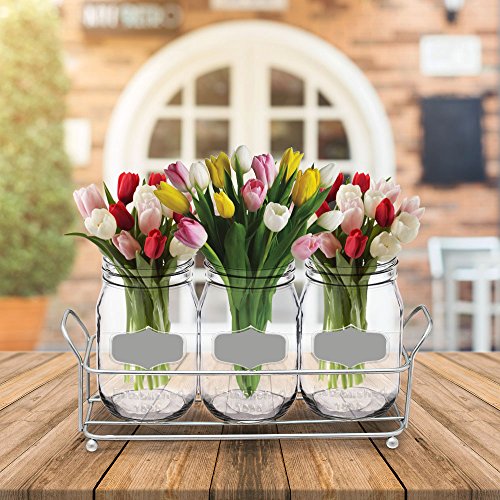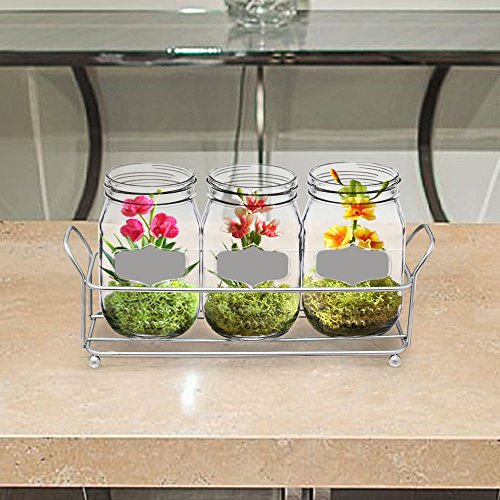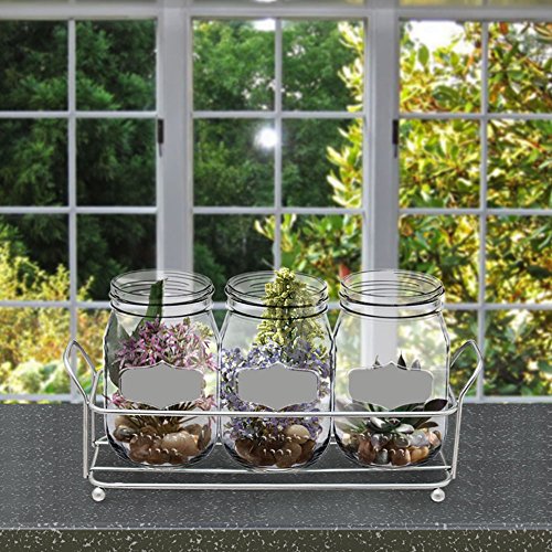 - CLASSY DIVIDER - Showcase your dining tools on the buffet with this package of preserves glass jars with chalkboard labels, all lined up in a metal tray. This chrome-plated container rack is made durable to sustain the weight of 3 vessels. Chic handled caddy keeps each 17 oz. bottle accessible and upright. Cutleries are organized in a single place, allowing guests help themselves to what they need. You? You're free to enjoy your own feast.
