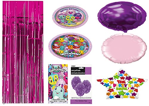 New Hatchimals 16 Guest Party Pack With Balloons And Metallic Curtain