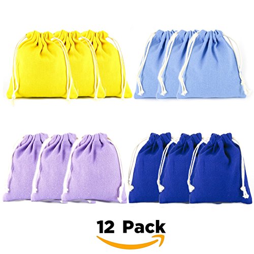 Yingkor 12-pack 100% Cotton Canvas Muslin Drawstring Bags Multi Colors