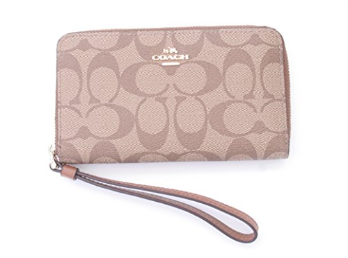 -. Feature : Signature coated canvas, Zip-around closure / Six credit card slots, Wrist strap attached / Zip coin pocket / Inside phone compartment / 6 1/4" (L) x 3 3/4" (H)