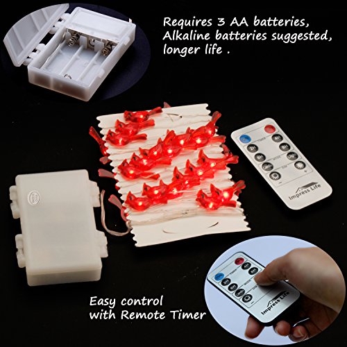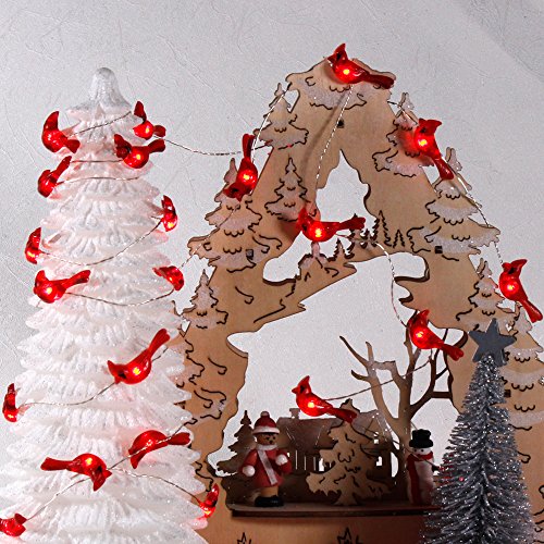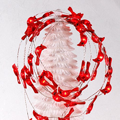 Cardinal Lights, Impress Life Red Snow Bird Decorative Ornaments 10 ft 40 LEDs Battery Operated with Remote Timer for Christmas Tree Wedding Camping Birthday Parties Bedroom Home Decoration