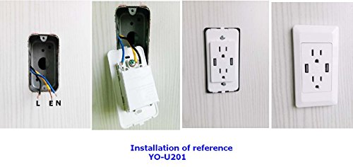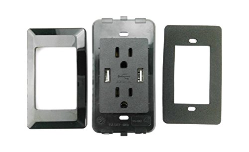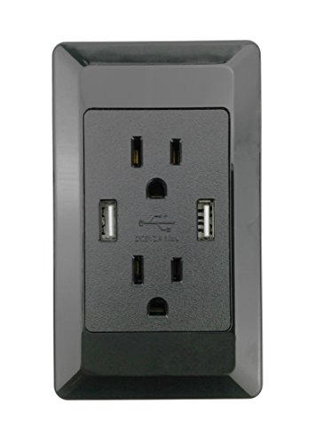 YOPI 2A High Speed Dual USB Phone Pad Charger with 15A Screwless Wall Plates 2 Outlets Band Panel Faceplate Black ETL Listed