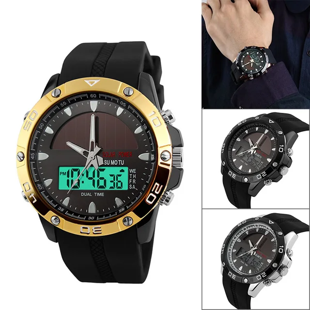 | [해외] 남성 스포츠 LED 디지털 석영 군사 야외 드레스 손목 시계 태양 에너지 시계 다기능 LXH |