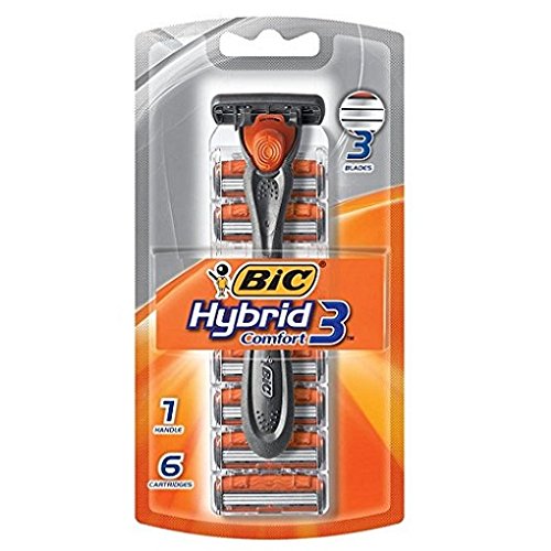 BIC Hybrid 3 Comfort, Men's Disposable Razor with 6-Count Cartridges
