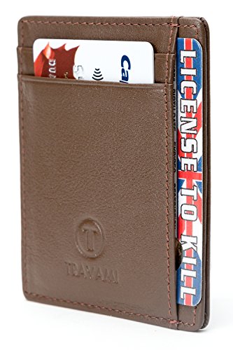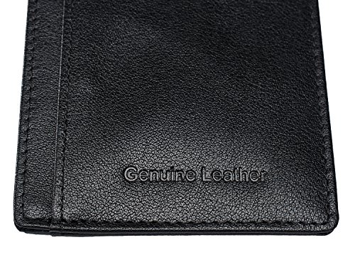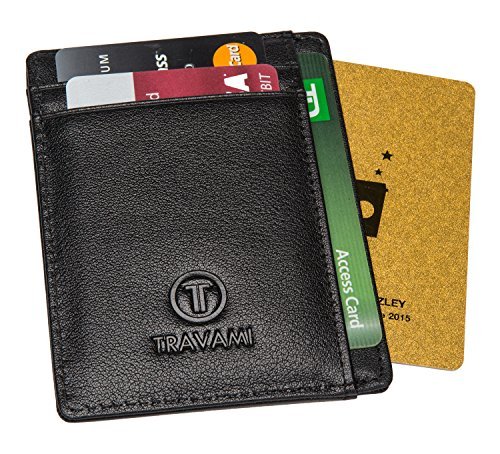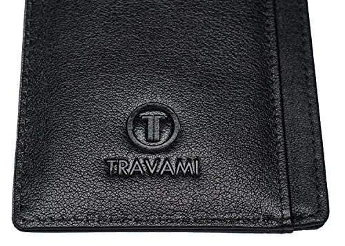 Travami Mens RFID Blocking Leather Minimalist Super Slim Front Pocket Money Clip Wallet | Black