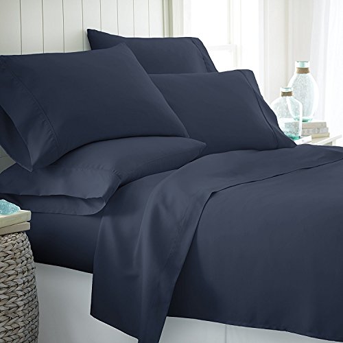 ELINA HOME BEDDING 300 Thread Count TWIN size Sheet Set 100 % Egyptian Cotton 4pc Bed Sheet set (Deep Pocket) (TWIN, NAVY-BLUE)