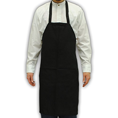 Basic Bib Apron 100% Spun Polyester Commercial Quality by ChefsCloset (Black)