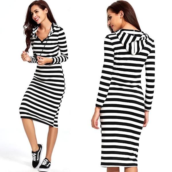 | ボーダー柄 フード付き ワンピース ミディアム丈 blackwhite 長袖 【ワンピース レディース 女性 黒 ブラックblack ロンデルブラック ミモレ丈 ひざ下丈 ワンピ 長そで ワンピース one-piece border ボーダー】 | |