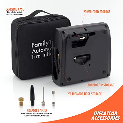Tire Inflator - 12V Air Compressor Pump (2017 Model) - 150PSI - Portable And Easy To Use - Perfect For Car, Bike And Sporting Equipment By FamilyTool Automotive (150PSI V2)