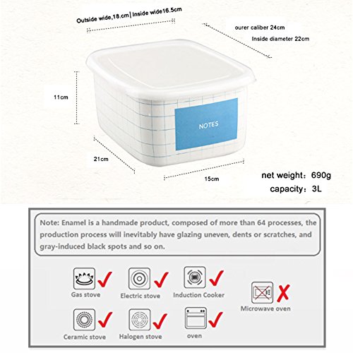 3 Liter / Quart Enamel Storage Box with Lid, SHUEHO White Enamel Food Storage container. Freezer Safe Date Marks (white)