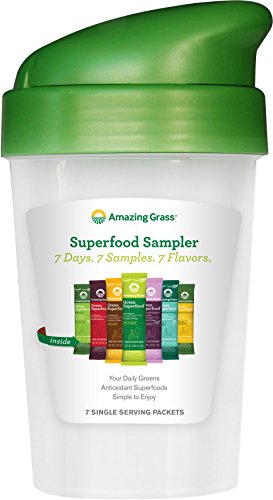 ReleaseDate : 2016-08-20 Studio : Amazing Grass Publisher : Amazing Grass Binding : Grocery Product Description Get your Greens on the Go with our BPA free shaker cup. The Amazing Grass Shaker Cup Green Superfood combo includes one Shaker Cup, and one packet each of our Green Superfood product line (7 packets total). Packets include: Original Green Superfood, Tangerine Immunity Green Superfood, Chocolate Green Superfood, Lemon Lime Energy Green Superfood, Alkalize and Detox Green Superfood, ORAC Green Superfood, Pineapple Lemongrass Green Superfood. 0