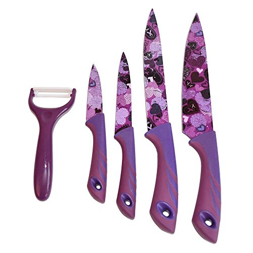 Stainless Steel Designer Kitchen Knife Set With Peller, 5Pcs, Purple