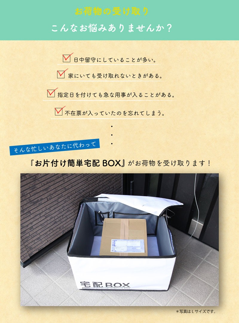 | 不在時の受け取りを便利に!せっかく頼んだ荷物でも受け取れるのは お休みの日だけ…なんて事はないでしょうかインターネット等で商品を 購入する機会が増えている中、お荷物の受け取りの時間が合わない。 留守が多い、突然の訪問に出れない時がある、等ありませんか。 早く受け取りたい!そんなお悩みを解決してくれるのがこの「宅配BOX」です ご不在の際にお荷物が届いたときはドライバーさんにお荷物を「宅配BOX」に入れて 施錠してもらい帰宅したら付属の鍵で開けるだけ! シンプルな構造ですがとっても便利!スマートにお荷物の受け取りができます。 |
