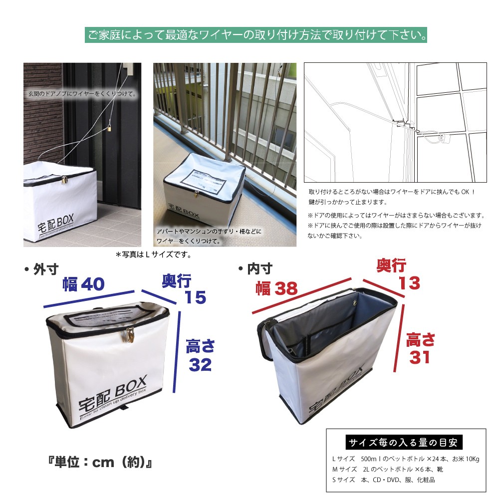 | 本体[外寸] (約) 幅400×奥150×高さ320mm [内寸] (約) 幅380×奥行130×高さ310mm ワイヤー 長さ2M 南京錠 |