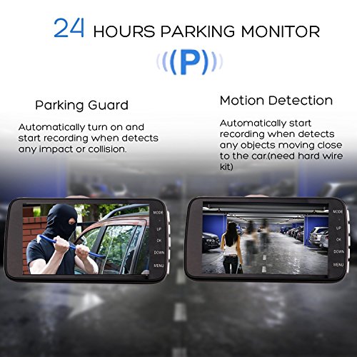- Parking Mode: Auto switch the dash camera to Parking Mode. As the Parking guard function is on, in the state of power off, the recorder will start and take video automatically if there is slightly vibration of automobile.
