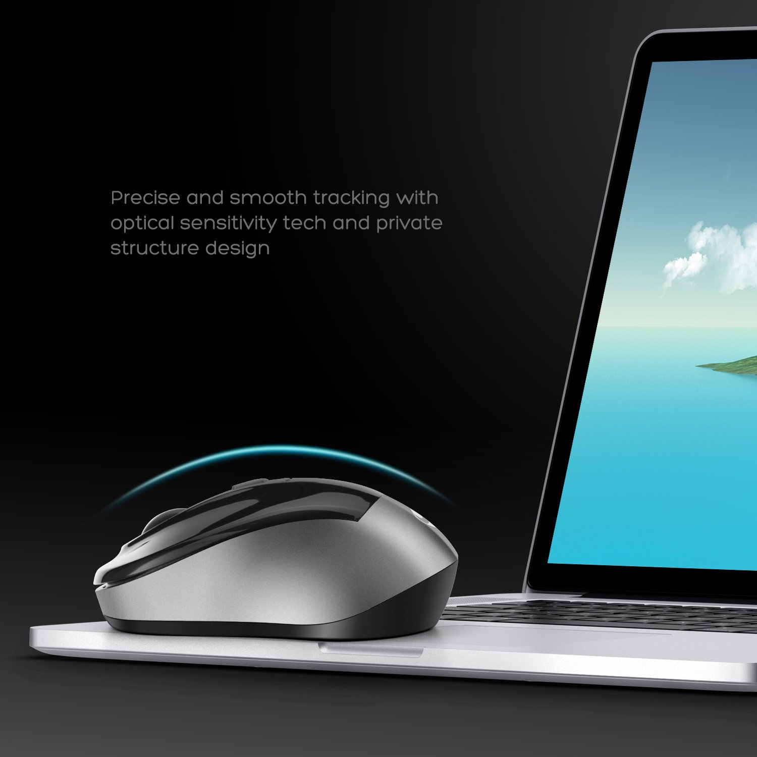 Wireless mouse which is cool and reliable in shades of black × silver gray and fits perfectly for business wind.