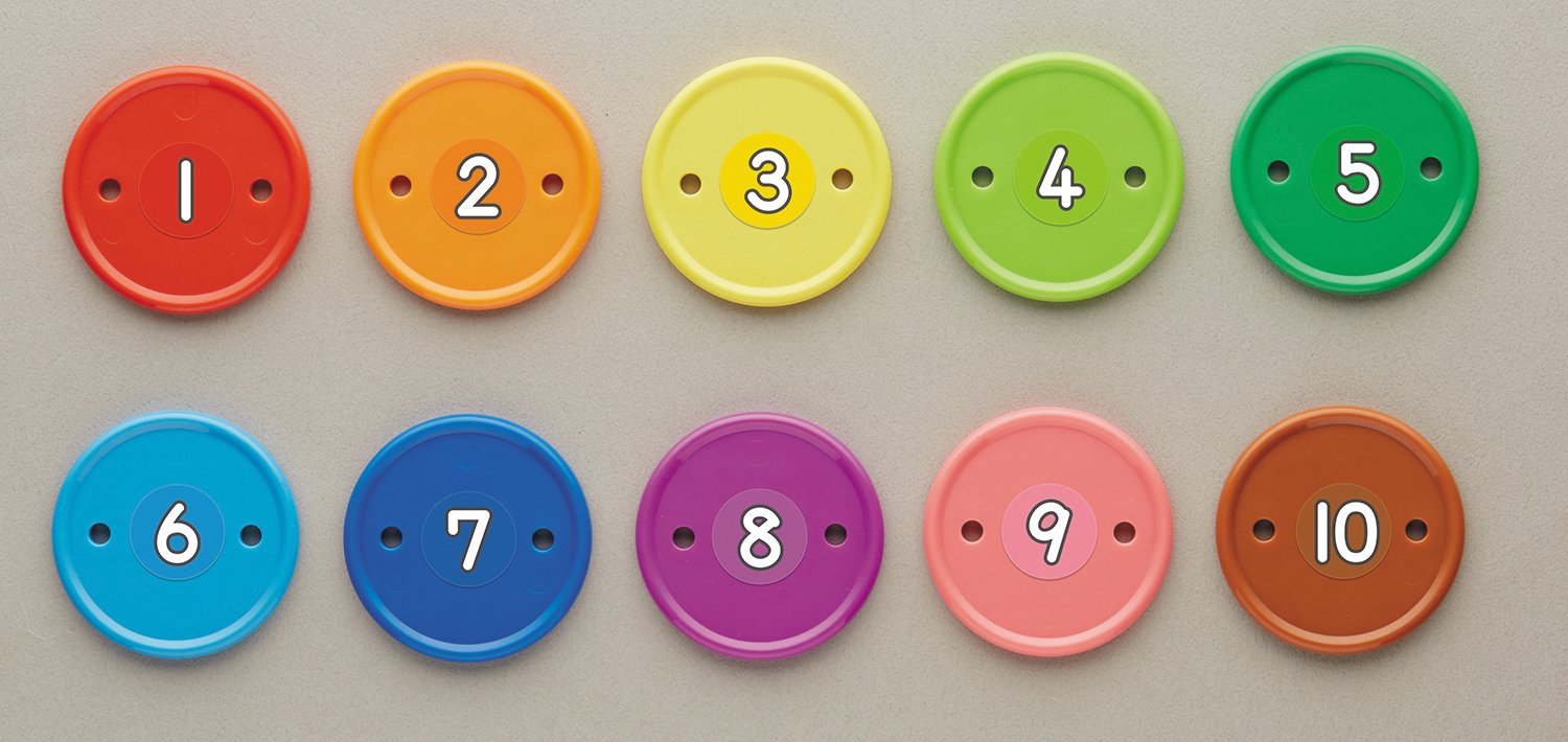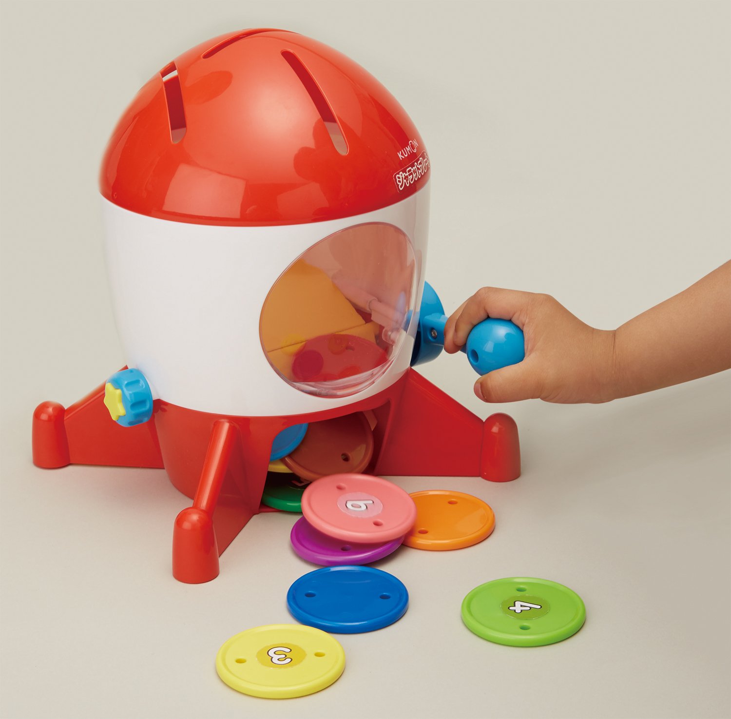 Place a number seal of 1 to 10 on each round plate with different color, and plunge that plate into and out of the rocket type body.