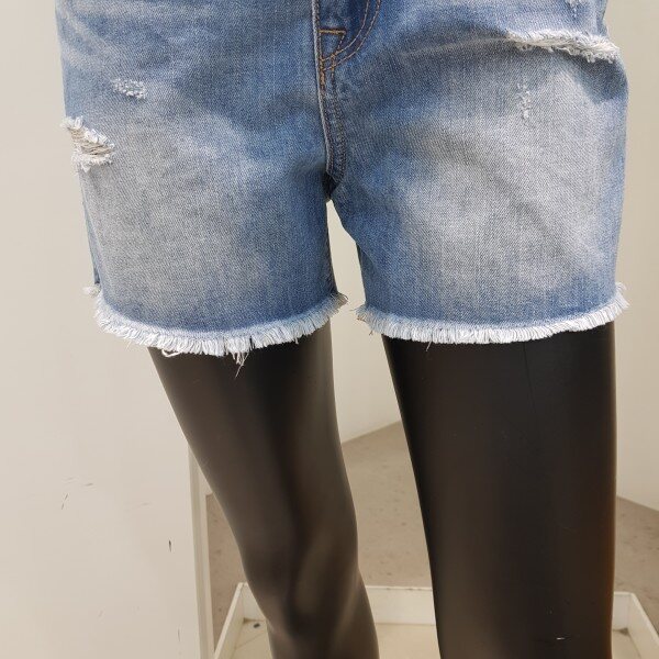 18 S/S 여름 신상.여자 M톤 구제 밑단변형 3부 루즈핏 데님 핫팬츠 입니다. 청량감 있는 M톤 인디고 워싱톤에 캣브러쉬와 오픈구제를 준 디자인으로, 난스판 원단에 부리 뒤쳐짐과 밑단 프린지 디테일이 포인트인 데님 핫팬츠 입니다. 하이라이즈 3부 핏으로 상의를 집어 넣어 코디하시면 다리가 길어보이게 강조할 수 있는 데님 핫팬츠 입니다.