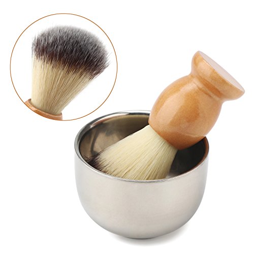 Segbeauty Beard Shaving Brush and Soap Bowl Set, Pure Badger Hair Natural Crude Wood Handle Brush Stainless Steel Cream Bowl for Men, Traditional Wet...
