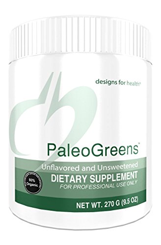 -. Feature : PaleoGreens is the great tasting Designs for Health greens food made with over 90% organic ingredients. / These greens have a Paleo profile; they contain no grains, legumes, alfalfa, corn, gluten, fructose or artificial sweeteners. / Unlike other greens products, we never add inexpensive fillers or bulking agents such as fiber, whole grasses, pectin, rice bran, and/or flax, which account for 40% to 60% of the content of most other greens products.
