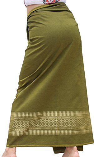 RaanPahMuang Unstitched Woven Thai Star Weave Silk Fabric for Skirt Dresses 40x70", Dark Olive Green