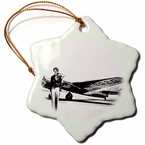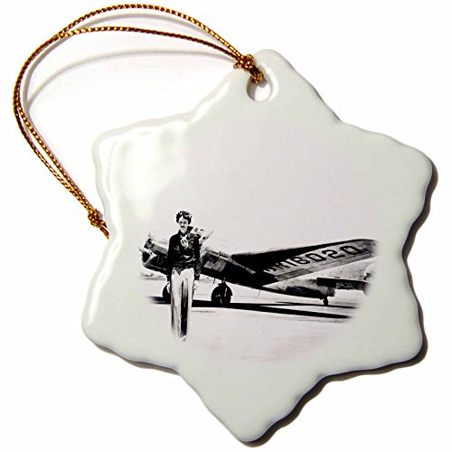 3dRose orn_62531_1 Old Photo of Amelia Earhart with Lockheed Electra Model 10 Snowflake Ornament, Porcelain, 3-Inch