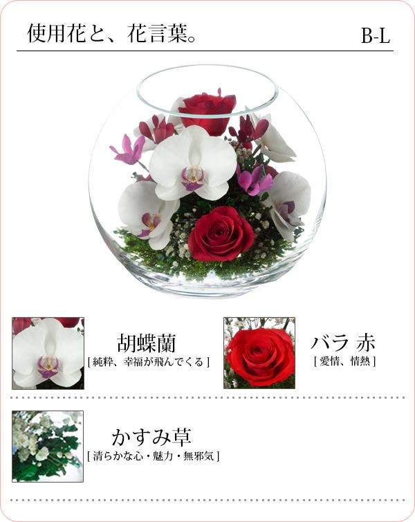 | 仕様 | 使用花:胡蝶蘭・バラ・かすみ草 鑑賞期間(目安):約10年※環境により異なる |