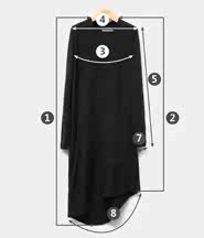 | 尺码 | ①左衣长 | ②右衣长 | ③胸围 | ④肩宽 | ⑤袖长 | ⑥袖臂围 | ⑦袖口围 | ⑧下摆围 | ||