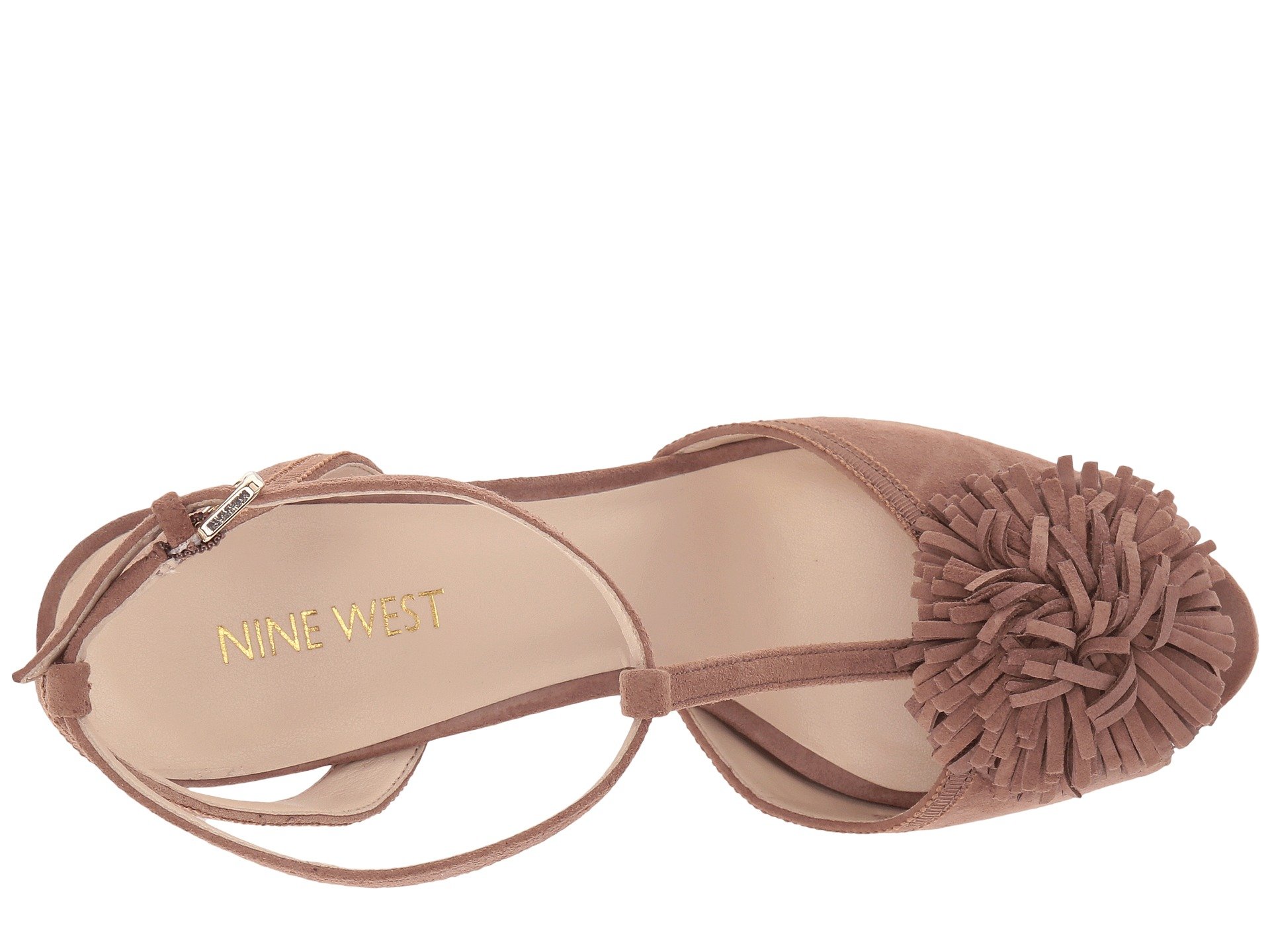 | Product Information SKU: #8851757Flaunt your stunning night-out ensemble with the Nine West? Essen sandal.Suede upper.T-strap with buckle closure.Peep-toe silhouette.Pom pom accent at toe.Man-made lining.Lightly padded footbed.Wrapped heel.Man-made outsole.Imported.Product measurements were taken using size 8, width M. Please note that measurements may vary by size.Weight of footwear is based on a single item, not a pair.Measurements: Heel Height: 4 in Weight: 9 oz |