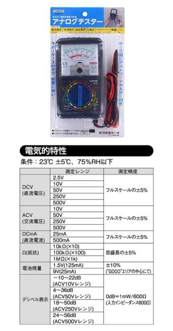 fk094igrjsケース裏にテストリードホルダーが付いていますサイズ本体:約W85×H140×D40mm、テストリード:約15mm個装サイズ:13×22×5cm重量約240g個装重量:264g素材・材質ABS、PA仕様使用電池:単3形乾電池×1セット内容本体テストリードホルスターケース取扱説明書保証書(1年)単3形乾電池×1(出荷時動作確認用)製造国中国着脱可能な保護用ラバーケース付き!ケース裏にテストリードホルダーが付いています