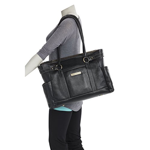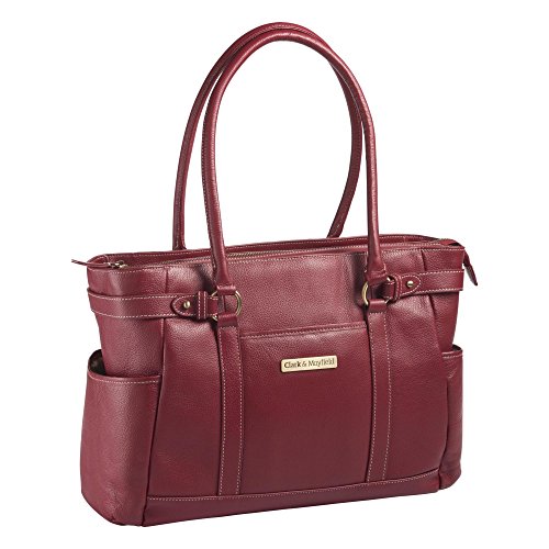 -. Brand : Clark & Mayfield -. Department : womens -. Feature : Fits up to 17.3 laptops / Soft, top-grain leather / Easy-access zippered top / Strap for rolling lage on back / Well-padded laptop section -. Label : Clark & Mayfield -. Manufacturer : Clark & Mayfield -. PackageQuantity : 1 -. ProductGroup : Apparel -. ProductTypeName : LAGE -. Publisher : Clark & Mayfield -. Size : One Size -. Studio : Clark & Mayfield -. Title : Clark & Mayfield Hawthorne Leather 17.3" Laptop Handbag