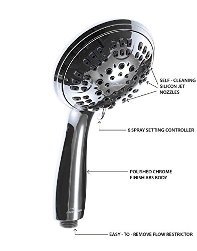 ►PREMIUM QUALITY ABS AND CHROME – The ShowerMaxx® hand held showerhead is made with highest quality ABS material and features an elegant Chrome polish – everything you’d expect from a premium shower set. Quick to install, the filtered rainfall massaging head has a large 4.5-inch face plate and offers a quiet, easy close. Built with a solid heat resistant all around finish for a modern and stylish look and feel found only in luxury spas and hotels.
