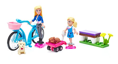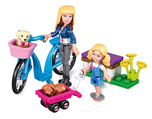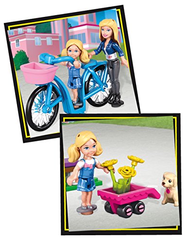 - Feature : One Barbie mini fashion figure with flower accessory / One Chelsea mini fashion figure / Set includes two puppies, buildable park bench with flower, wagon, and bicycle with basket / Combine with other Mega Bloks Barbie play sets / Build a world of fashion and fun!
